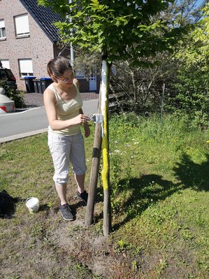 „ Auch in 2020 erwartet uns eine Dürre, die es fordert, dass schon bestehende Bäume bewässert werden müssen. Die Bewässerungsvorrichtungen waren schon vor einiger Zeit im Rat der Gemeinde Ostbevern beschlossen worden. Dieser Beschluss wurde allerdings nicht umgesetzt, so dass wir nun selbst aktiv werden." , so unser Ortsverbandssprecher Ulrich Lunkebein.